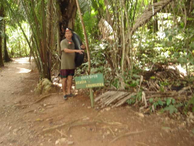available at the entrance of the park, from there on its only the trees. We continue on our trail and learn about various plant and animal life including: the mahogany tree, the butt plug tree, the poison ivy plant, the sapodilla tree, the various palm trees and many more. As we journey along our trail we